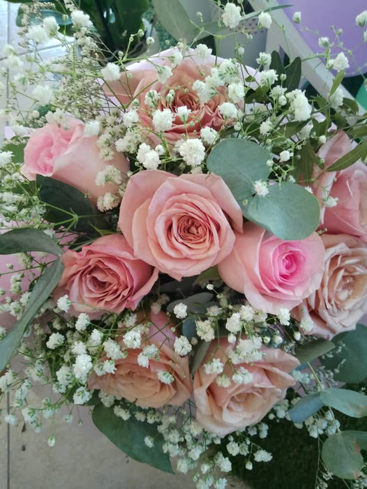 Ένα ρομαντικό και φίνο μπουκέτο που συνδυάζει ροζ τριαντάφυλλα με λευκό γυψόφιλο, δημιουργώντας μια τρυφερή και κομψή σύνθεση. Η απαλή απόχρωση των τριαντάφυλλων εκφράζει αγάπη, εκτίμηση και γλυκύτητα, ενώ το αέρινο γυψόφιλο προσθέτει φρεσκάδα και ελαφρότητα.
